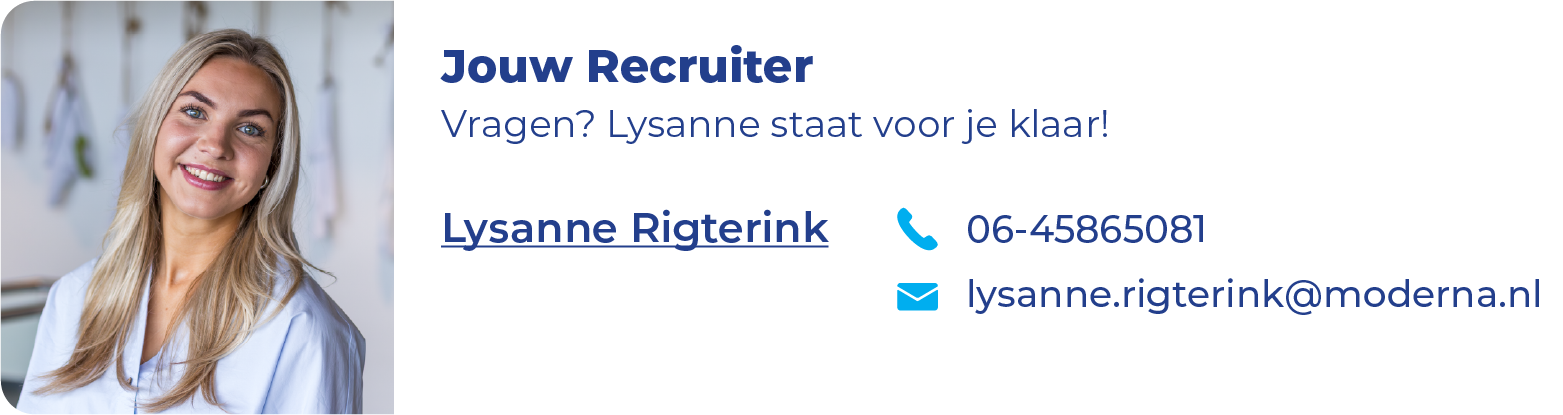 • Ontwikkelingsmogelijkheden: groei en leer in jouw vakgebied of groei door naar de functie operator.